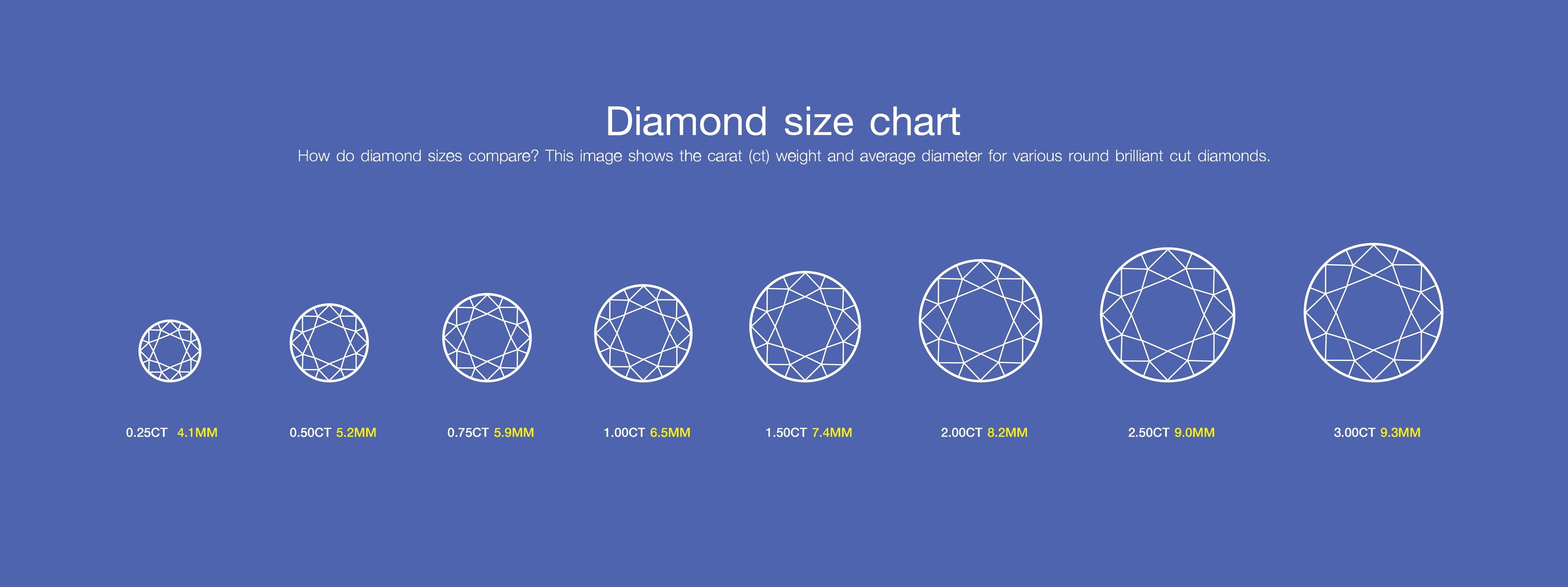 Carat refers to the physical size of the diamond. Smaller stones under .10 carat are also typically called "melee" and are used as accent stones. Size is truly a preference. We are happy to explore the different options and sizes with you to find what is the best fit. (Fun fact - you might be wondering "isn't it spelled karat?" That karat refers to gold purity.)