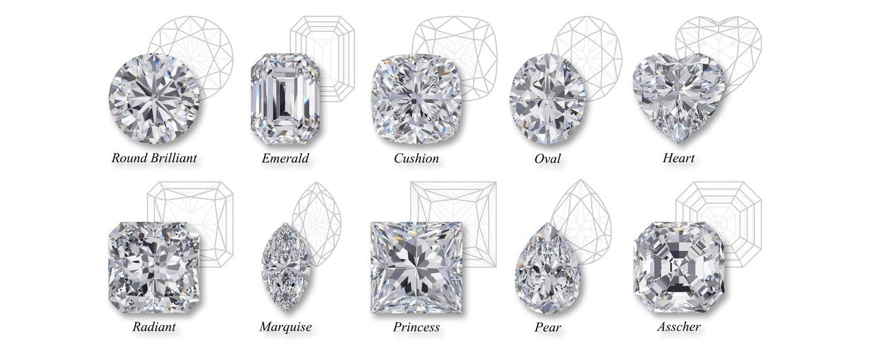 In our opinion as Graduate Gemologists, the most important of the 4 is Cut. The cut of a diamond is what creates the reflection and refraction of light. This light is called "brilliance," or as most of us say "sparkle". As light enters the stone, it hits each facet and bounces to the next. If the angle is not "correct," light leaks out of the bottom or the side and doesn't refract back up and sparkle. If a diamond is cut well, it can hide smaller inclusions or even make a stone appear slightly less yellow! Cut also refers to the shapes that diamonds come in. There are many, but the most popular are round, princess (square), oval, emerald (rectangular with cut corners), pear, marquise (pointed at both ends), and cushion (a rounded square).